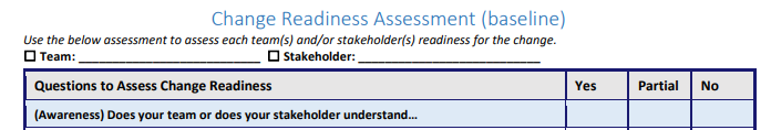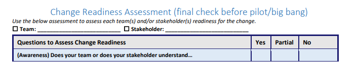 CHANGE READINESS PROCESS SAMPLE
