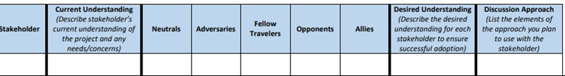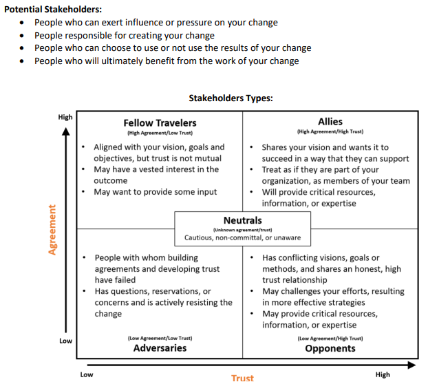 Listed below are various approaches for each Stakeholder Type to either maintain or shift each stakeholders’
