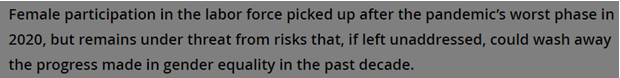 The COVID-19 pandemic exposed the tenuous economic, societal, and community infrastructure for women working outside of the home.
