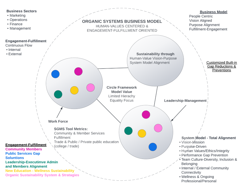 - Also, since Covid effects have resulted in a “ever-changing market and workforce landscape” this organic framework can accommodate the required changes for sustainable growth and engagement-fulfillment of a human-value and purpose-driven framework core or engine.